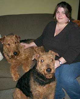 Airedales, Henry & Augie and a plethora of cats. Henry is 2 years old