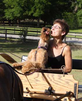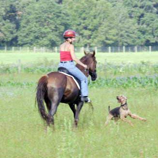 Airedales, 2 Tennessee Walking Horses, and her husband Chuck.