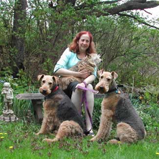 to Airedales, Shamus and Gaelan, and Norwich Terrier, Norton. We live