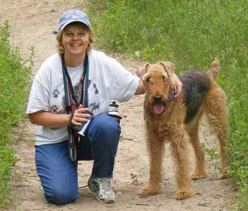 Holly and Ginger. I live at the gateway to the north; North Bay, Ontario, and am a mother of two girls. My oldest two- legged daughter Jessica is sixteen and in her last year of high school. My Aire girl, Shady Lady, alias Ginger, is six years old. Ginger is my first Airedale and I love her impish, playful character. I believe that each furkid we have is here to teach us a lesson, and for Ginger it is that life should be fun. I host the Airedale Quilting Bee site, and I am also its Web Page Designer. Furthermore, I am co-moderator for the ADT Quilting Bee List, and the Queen Bee's co-pilot. Working on the Marketing Web Pages is my way of contributing to Airedale Rescue. Designing the pages is not only an adventure, but it is an honour to work with so many talented ladies. "Cirque du Sol’Aire" is the comical trait of our fur kids, and living with them makes life a circus. |